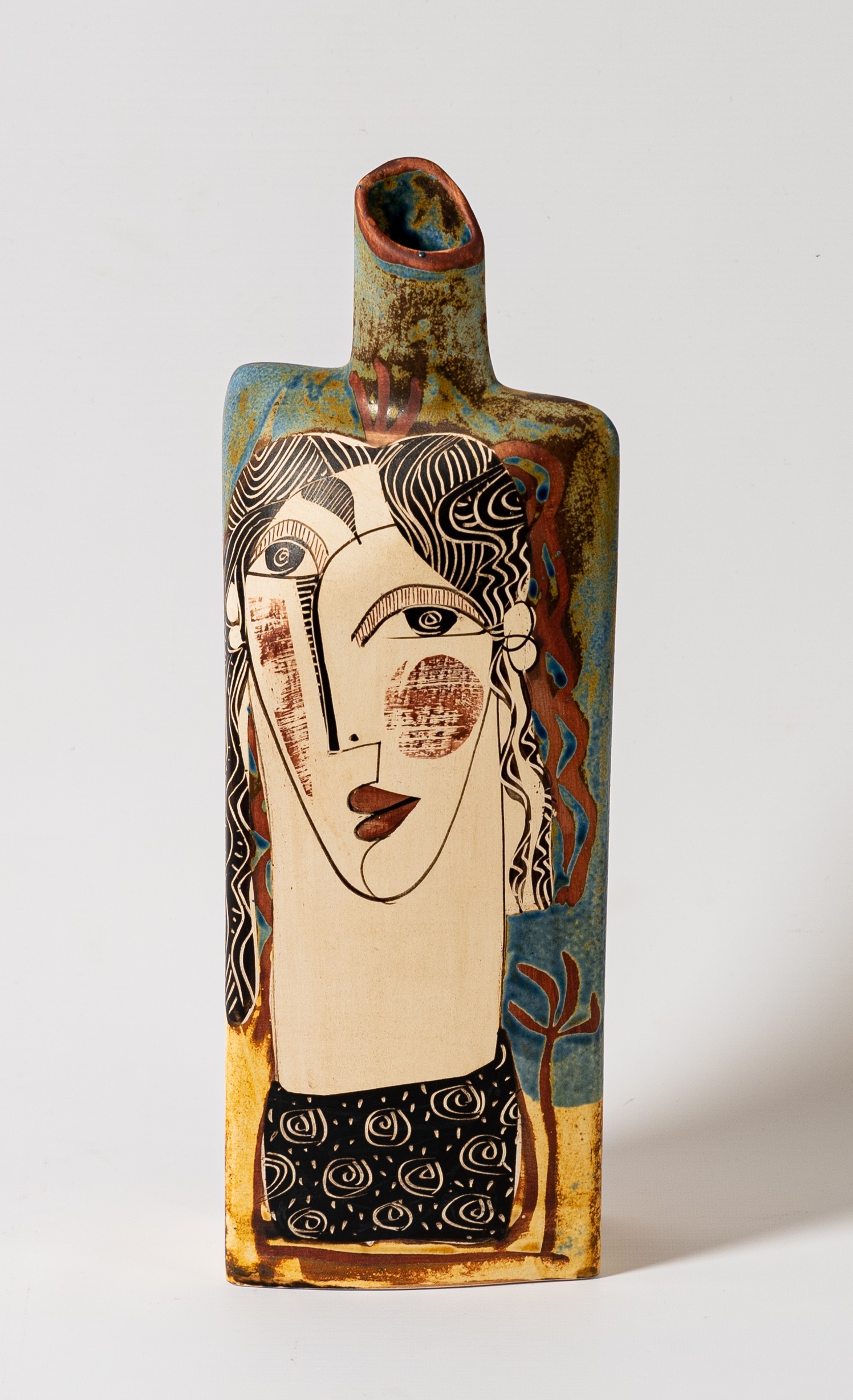 The Alfajar imaginary of anthropomorphic and zoomorphic figures together with the pure abstraction of lines and colors adapt perfectly to the different shapes and sizes. We can find from the mythical bulls, to the classic plates, bottles or jewelery boxes. An infinity of shapes that will fill your home with warmth. All these pieces are made 100% by hand in Malaga, Spain. After 30 years of experience, we can assure that the objective of Alfajar is to express the inner relationship of each person with the world, and therefore, with the nature around them. In this case through sculpture, transferring that relationship with the world to a round shape and with the wide range of bottles and vases we have. The shapes are inspired by traditional vases from the different cultures that once populated the Mediterranean: Etruscan, Iberian, Mycenaean, Muslim, Greek and Roman, although treated with a coherence of style that implies geometrically stylized silhouettes and a simplification of volumes and structures. Cubism and expressionism also play a very important role in our work. Our intention is to achieve that synthesis between the simplification of classical Mediterranean forms and the avant-garde of the 20th century, in this case applied to sculpture.
