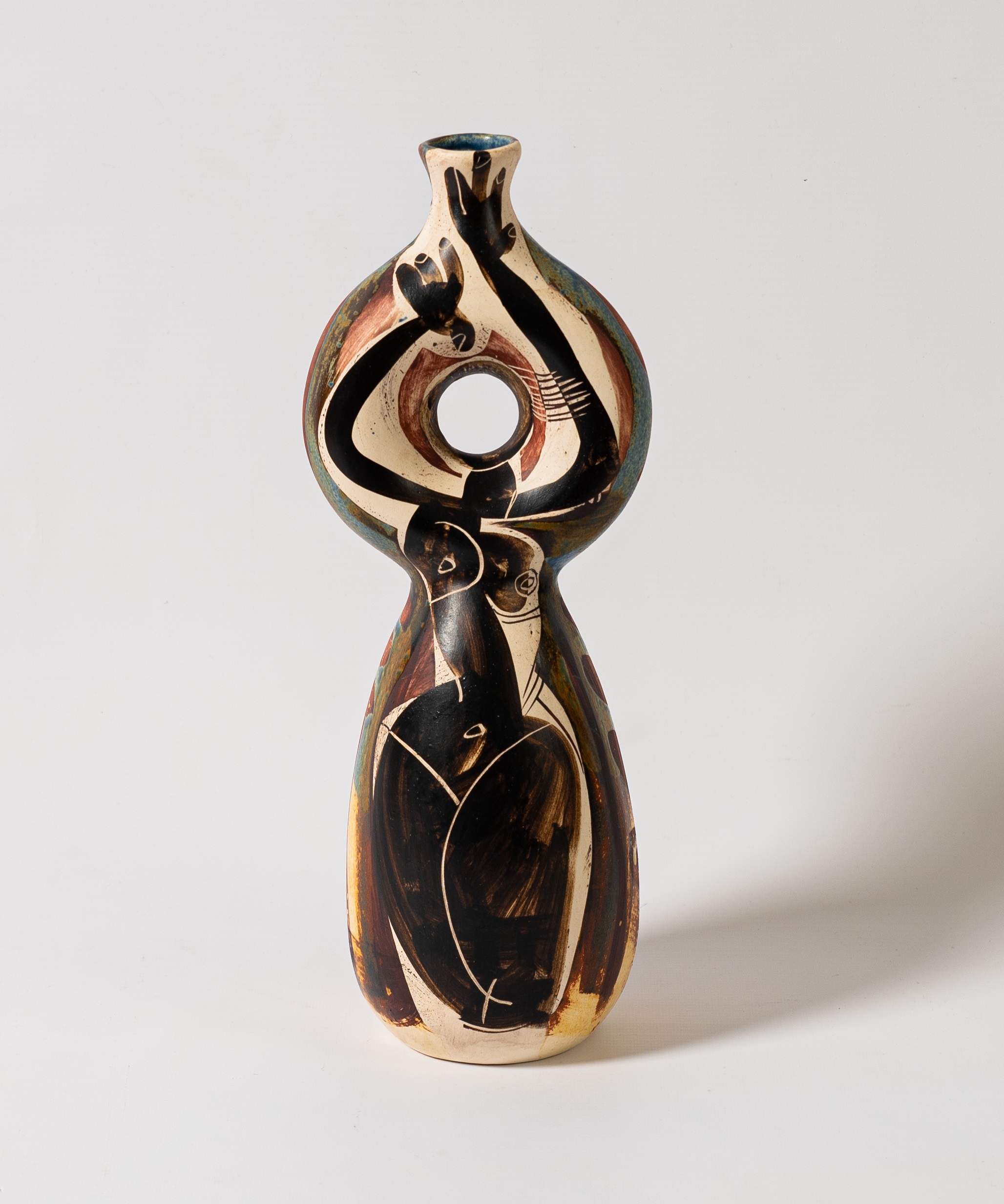 The Alfajar imaginary of anthropomorphic and zoomorphic figures together with the pure abstraction of lines and colors adapt perfectly to the different shapes and sizes. We can find from the mythical bulls, to the classic plates, bottles or jewelery boxes. An infinity of shapes that will fill your home with warmth. All these pieces are made 100% by hand in Malaga, Spain. After 30 years of experience, we can assure that the objective of Alfajar is to express the inner relationship of each person with the world, and therefore, with the nature around them. In this case through sculpture, transferring that relationship with the world to a round shape and with the wide range of bottles and vases we have. The shapes are inspired by traditional vases from the different cultures that once populated the Mediterranean: Etruscan, Iberian, Mycenaean, Muslim, Greek and Roman, although treated with a coherence of style that implies geometrically stylized silhouettes and a simplification of volumes and structures. Cubism and expressionism also play a very important role in our work. Our intention is to achieve that synthesis between the simplification of classical Mediterranean forms and the avant-garde of the 20th century, in this case applied to sculpture.