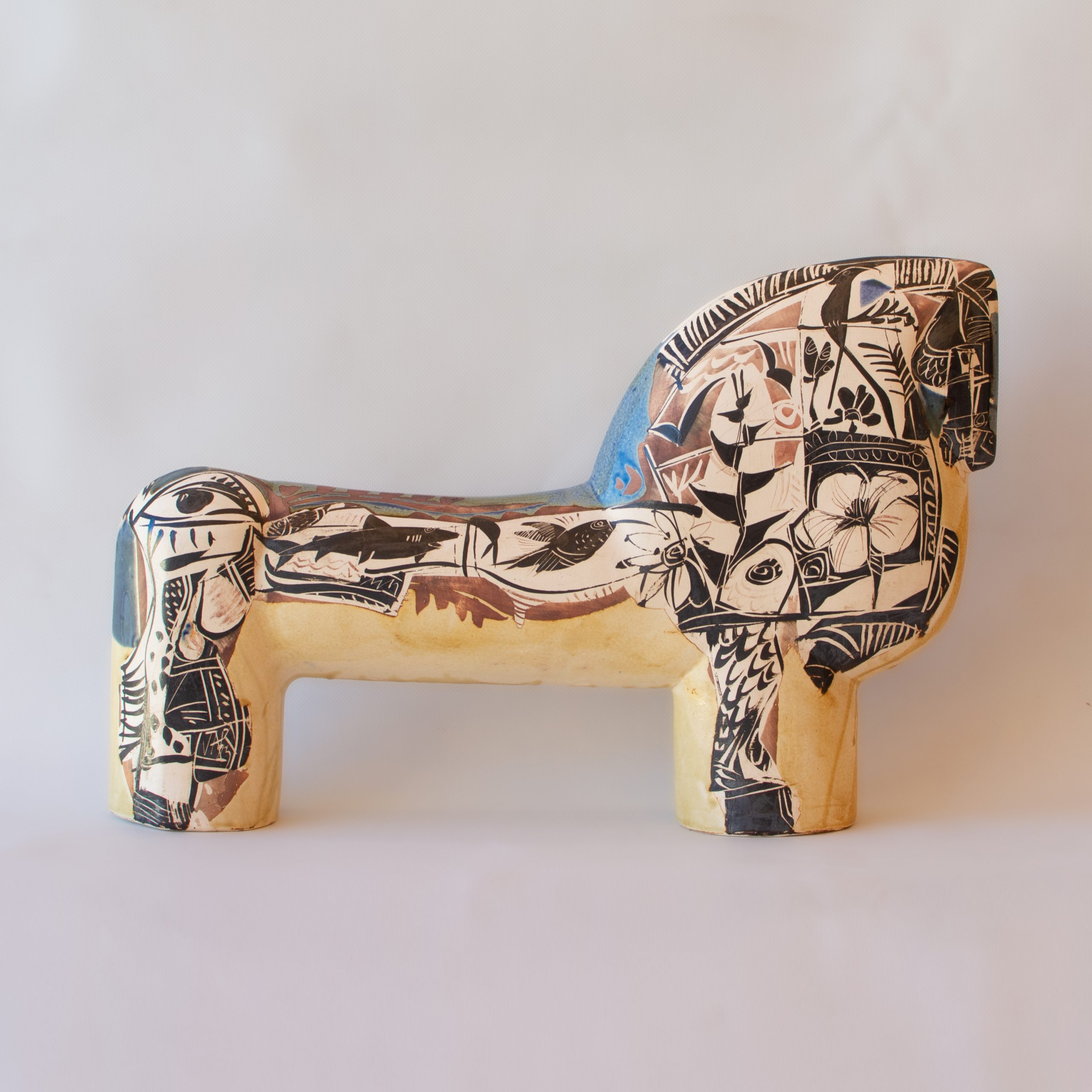 Caballo súper grande. Caballo ibérico realizado en gres y tratado con óxidos de hierro, manganeso y cobalto. Cada pieza es una obra única. Medidas: 55x11x35 cm.