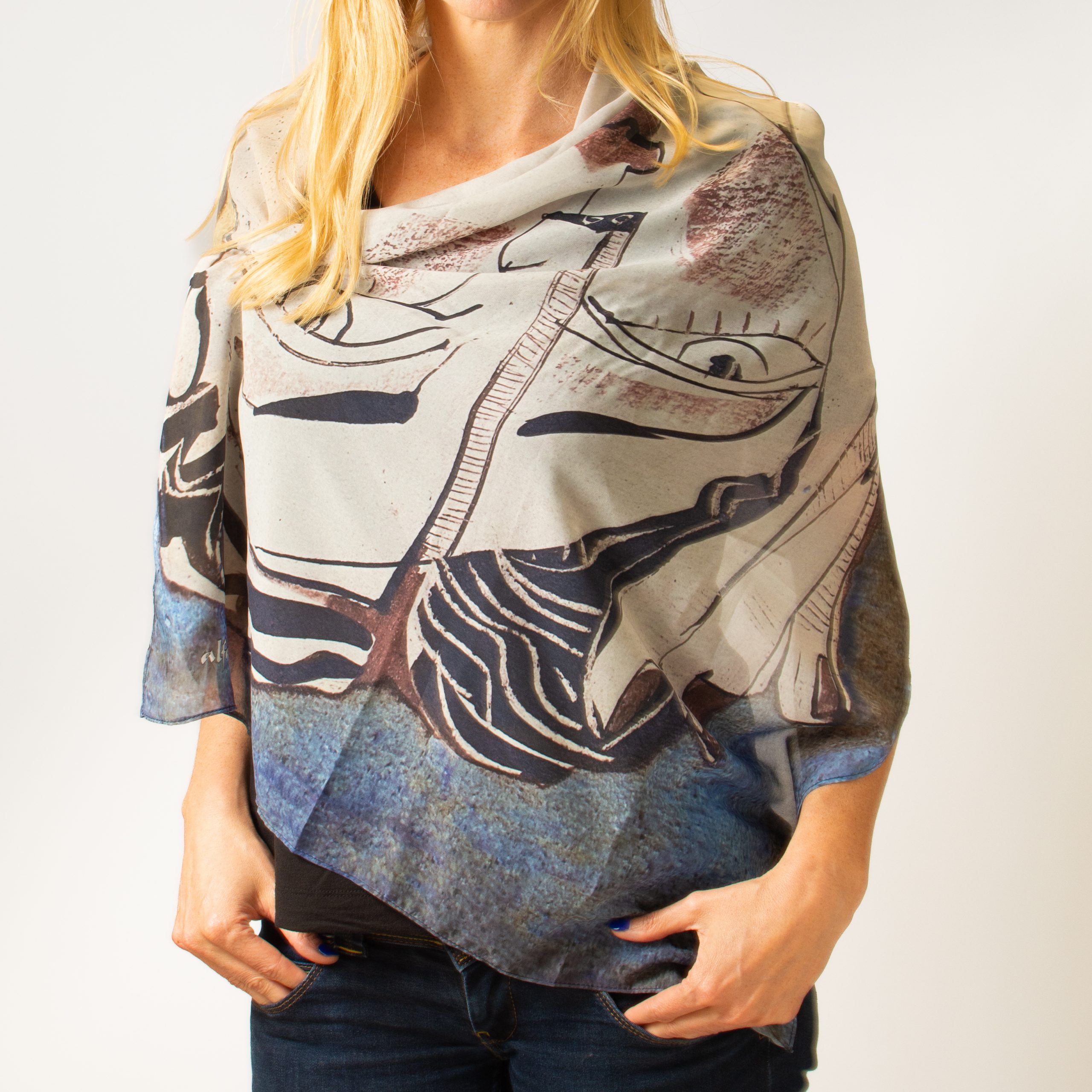 Las formas y los colores que caracterizan las superficies de nuestra ceramica emigran con todos sus matices al ambito textil y adquieren un nuevo significado compatible con las ultimas tendencias de la moda. Medidas:70x140cm