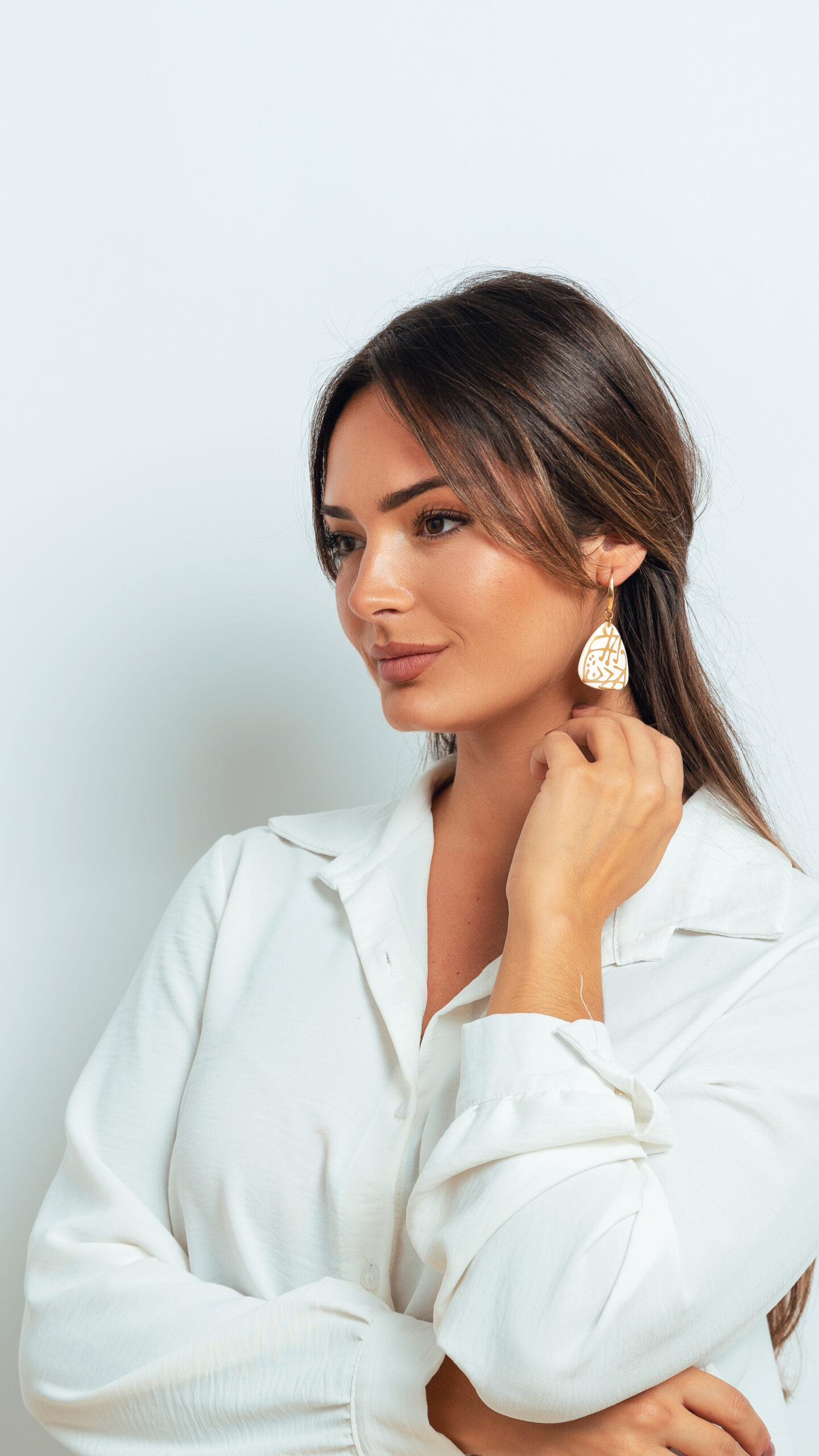 Medidas: Porcelana: 6 x 2,5 x 0,3 cm Pendiente con gancho: 8 x 2,5 cm