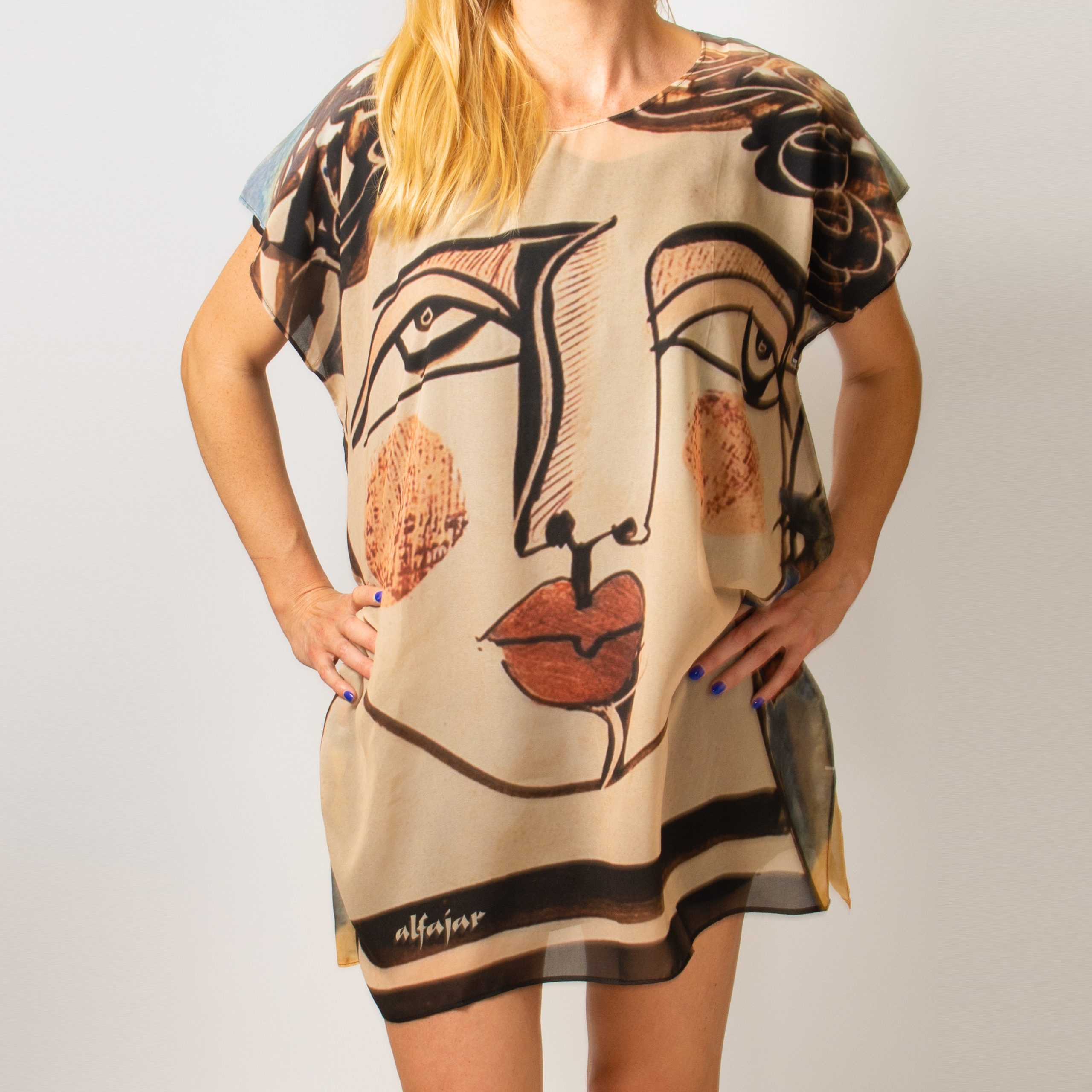 Las formas y los colores que caracterizan las superficies de nuestra ceramica emigran con todos sus matices al ambito textil y adquieren un nuevo significado compatible con las ultimas tendencias de la moda. Medidas: 38x88cm